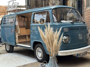 • Stilvoller Vintage-VW-Bus mit festlicher Deko